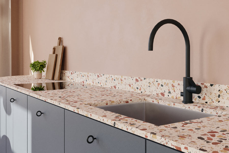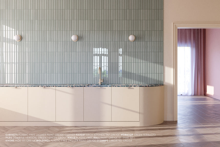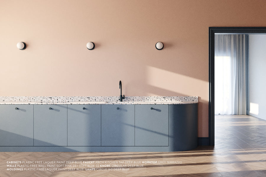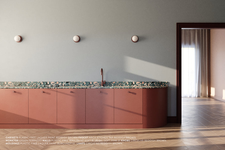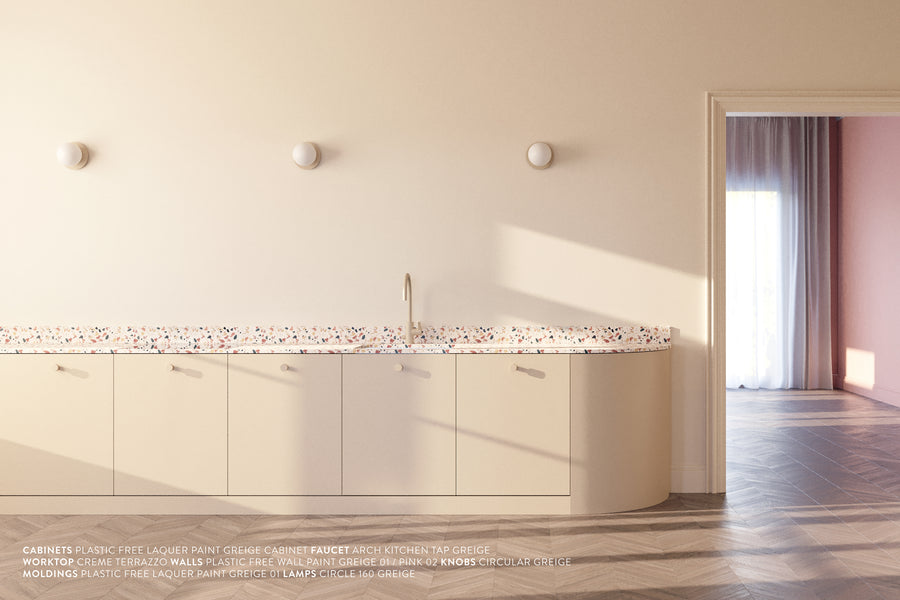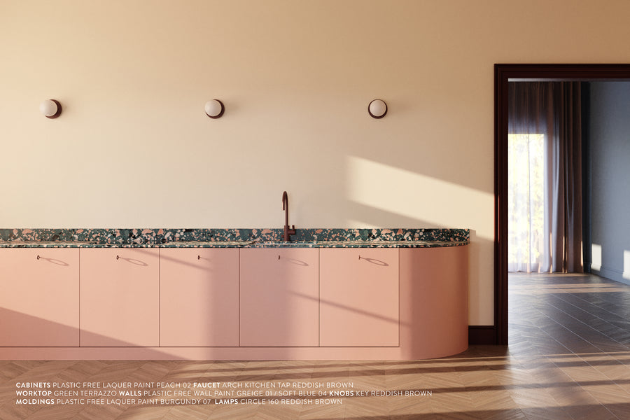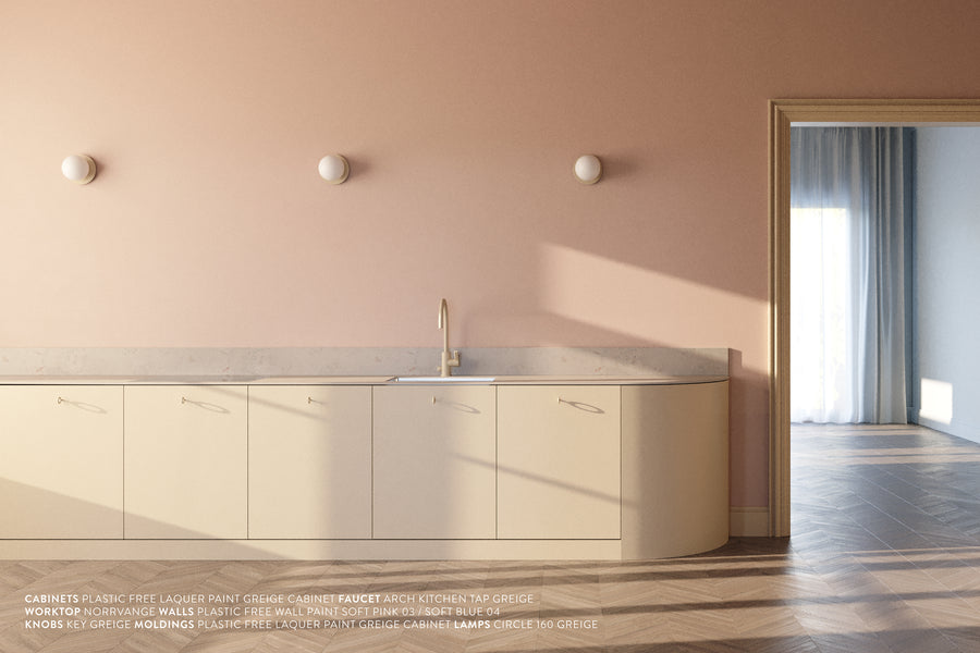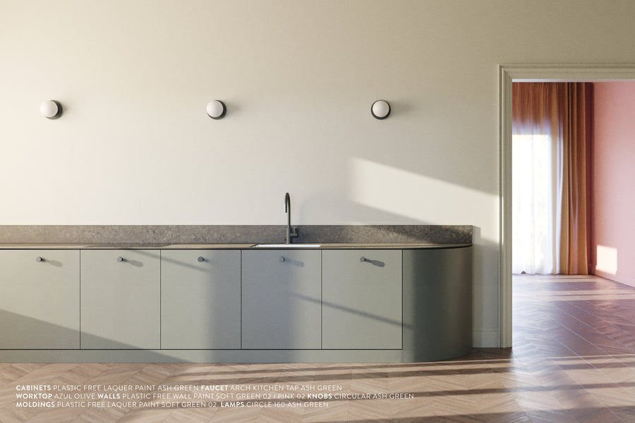 Renew your existing kitchen with our plastic-free laquer paint. Combine the colour of the kitchen with our organic wall paint, tiles, grout, worktops, faucets and handles. We have ensured that the materials and shades harmonize. Scroll down for a step-by-step guide.